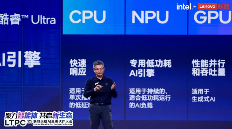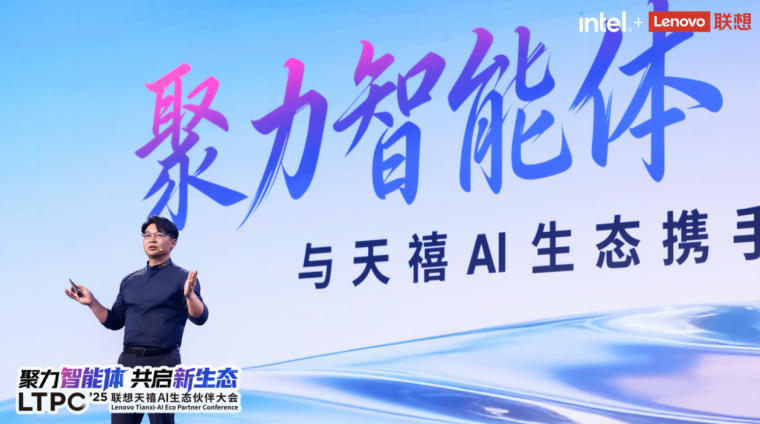 大会上,英特尔市场营销集团副总裁、中国区总经理郭威表示:“英特尔与联想携手前行已有四十年,共同推动了个人计算领域的一次次创新跨越。今天,站在‘人工智能+’时代的起点,英特尔与联想已合作推出覆盖消费与商用市场的数十款AI PC。今后,英特尔将继续依托软硬件深度协同,全面支持联想天禧个人智能体生态‘一体多端’战略的发展。我们也将共同构建更开放的生态,赋能开发者社群,激发千行百业的创新活力,也让技术进步惠及千家万户。”