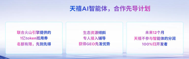 基于坚实的生态与商业基础,联想在本次大会上联合火山引擎启动了“天禧AI生态智能体先导计划”。该计划为早期加入的开发者提供了极具吸引力的多重扶持,其中包括提供1亿token抵用券,助力开发者通过扣子编程的形式进行智能体开发;帮助开发者获得GEO先发优势;在未来12个月,智能体产生的全部利润将100%归于开发者。联想同时宣布,已与扣子、百度文心、猎户座等主流智能体平台达成合作,并持续期待更多智能体平台加入,为联想用户带来丰富的智能体服务,也为开发者带来流量加持。